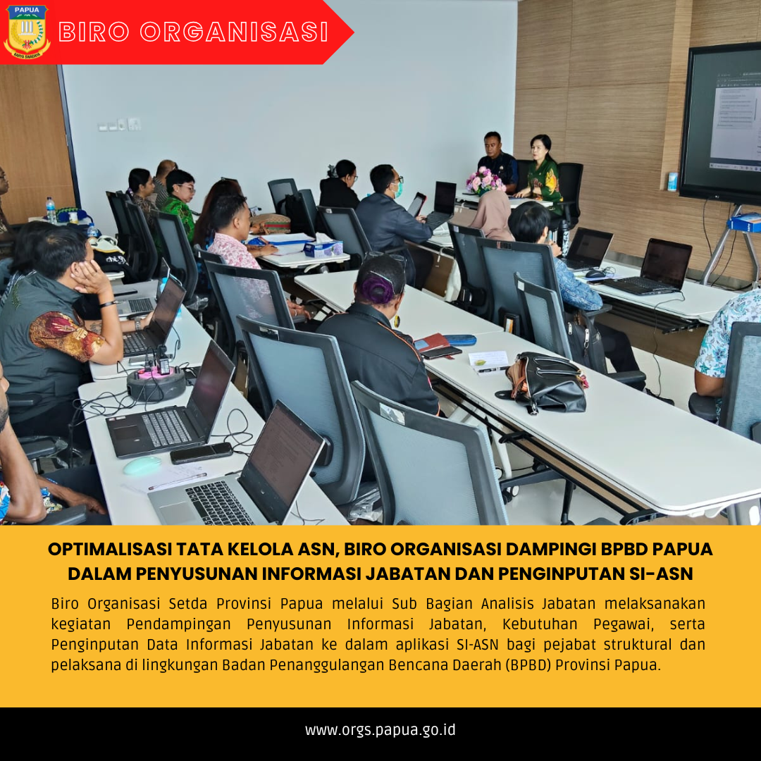 Selamat datang di Website Resmi Biro Organisasi Sekretariat Daerah Provinsi Papua. Website ini hadir sebagai sarana informasi dan komunikasi yang bertujuan untuk menyampaikan berbagai program, kegiatan, serta kinerja Biro Organisasi Setda Provinsi Papua. Melalui platform ini, kami berharap seluruh elemen masyarakat dapat dengan mudah mengakses informasi yang transparan dan akuntabel terkait pelaksanaan tugas serta fungsi kami dalam mendukung tata kelola pemerintahan yang baik. Terima kasih atas kunjungan Anda.